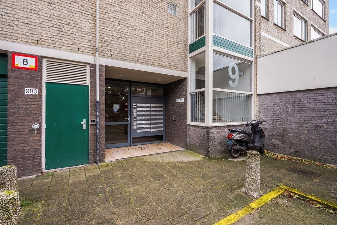 Gesloten portiek met belplateau, liften en trappenhuis