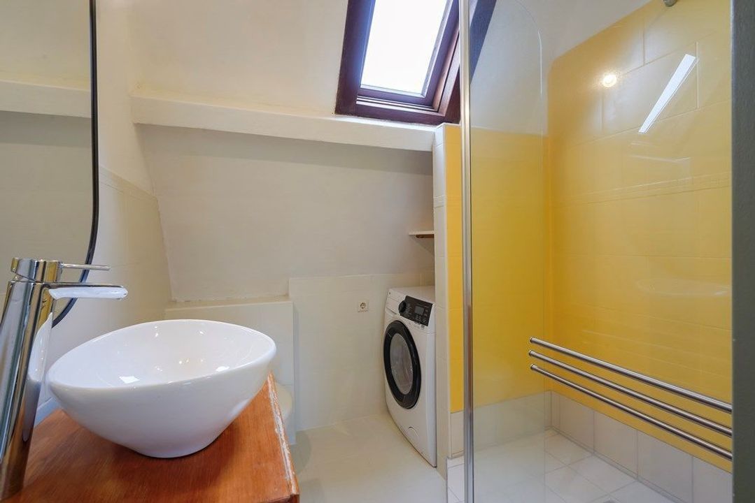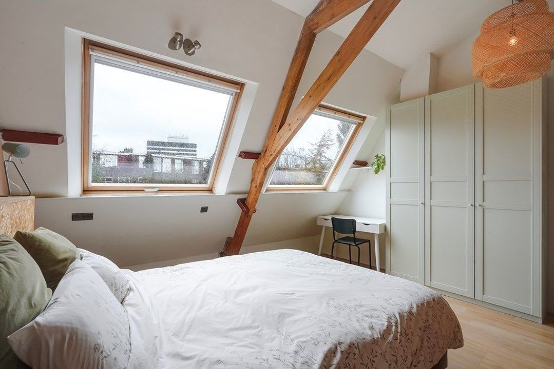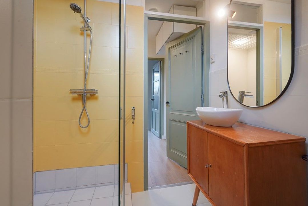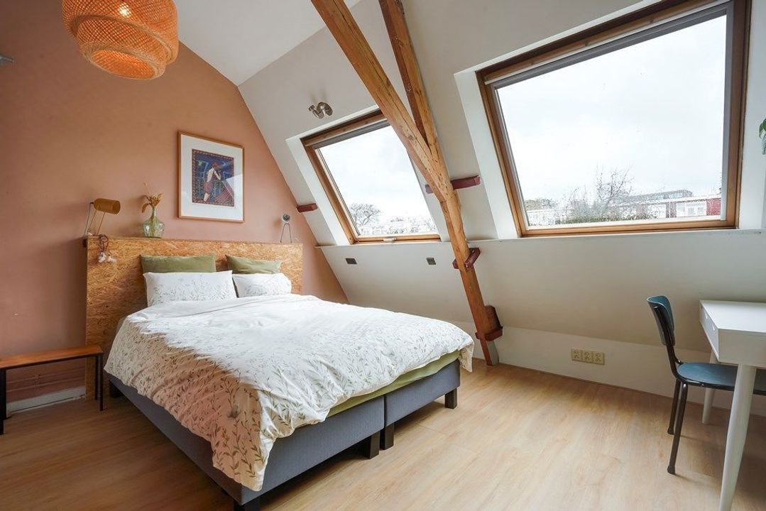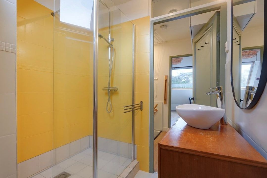 Daarnaast een badkamer met inloopdouche, toilet en wastafelmeubel, en een tweede slaapkamer met dakkapel aan de voorzijde.