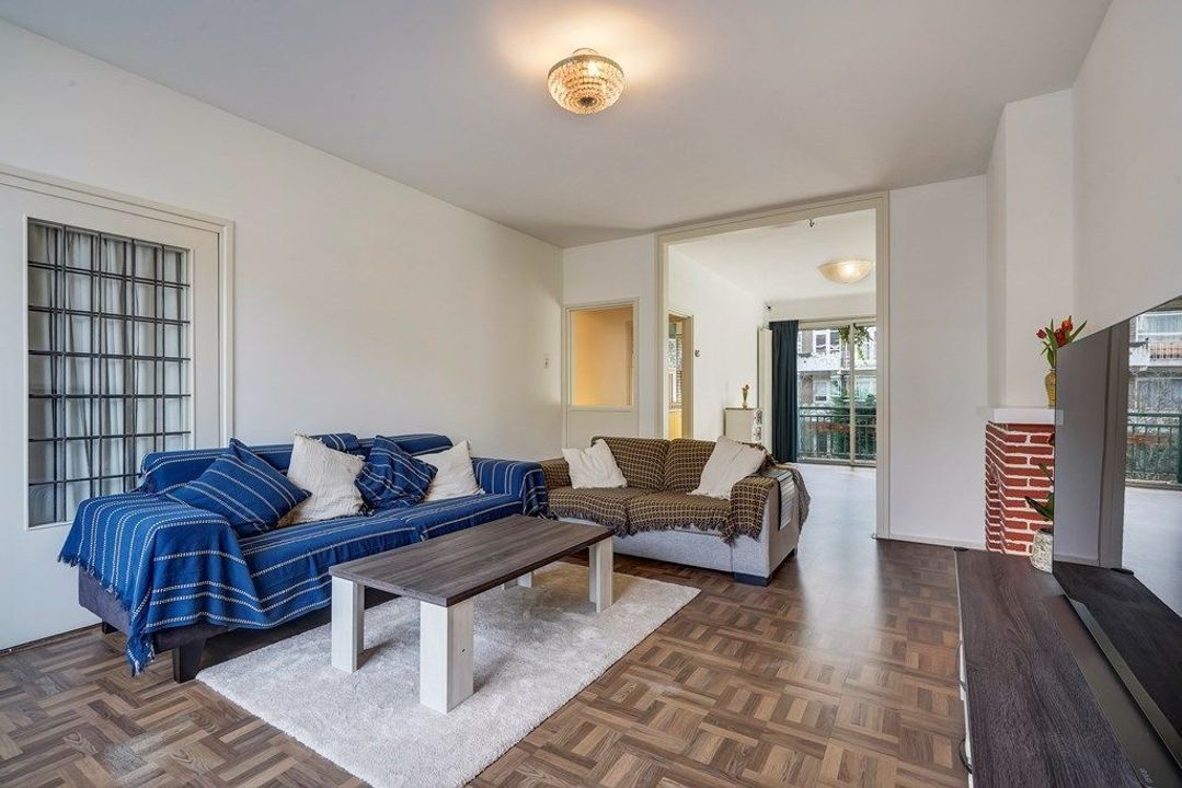 De ruime woonkamer is licht en prettig ingedeeld dankzij de grote raampartijen aan de voorzijde. Aangrenzend bevindt zich de eetkamer met toegang tot het balkon. Daarnaast is er een slaapkamer aan de voorzijde.