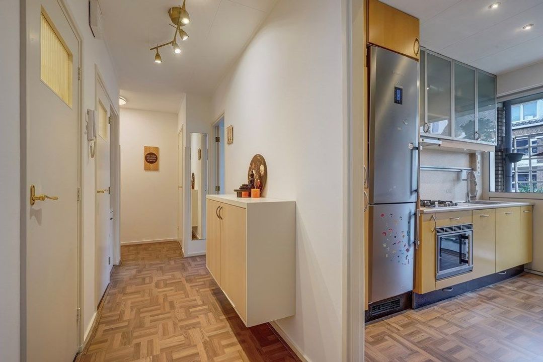 De woning is gelegen in een rustige straat en beschikt over veel daglicht, een royaal balkon en alle stedelijke voorzieningen op korte afstand. De ruime woon-/eetkamer heeft een prettige open uitstraling. Grote raampartijen zorgen voor een mooie lichtinval en bieden zicht op het groen rondom het gebouw. De keuken is functioneel en verzorgd ingericht en beschikt over voldoende werk- en kastruimte.
