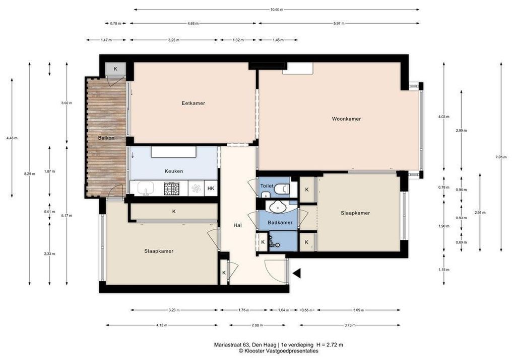 Entree, hal met vaste kasten. Slaapkamer aan de achterzijde met toegang tot het balkon. De badkamer is functioneel en netjes uitgevoerd en voorzien van een inloopdouche met thermostaatkraan, een wastafelmeubel en spiegel. Separaat toilet met zwevend closet en fonteintje.