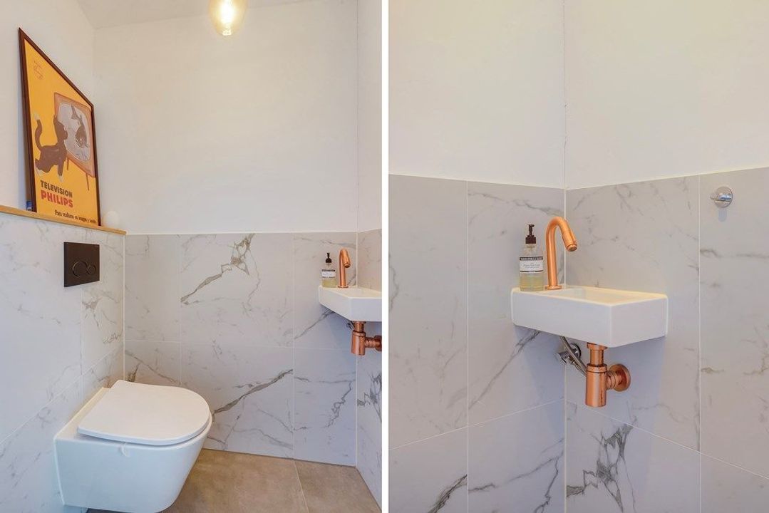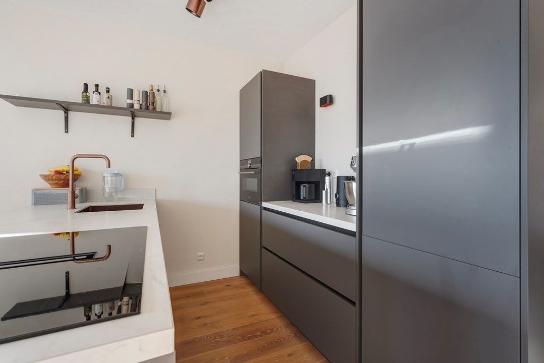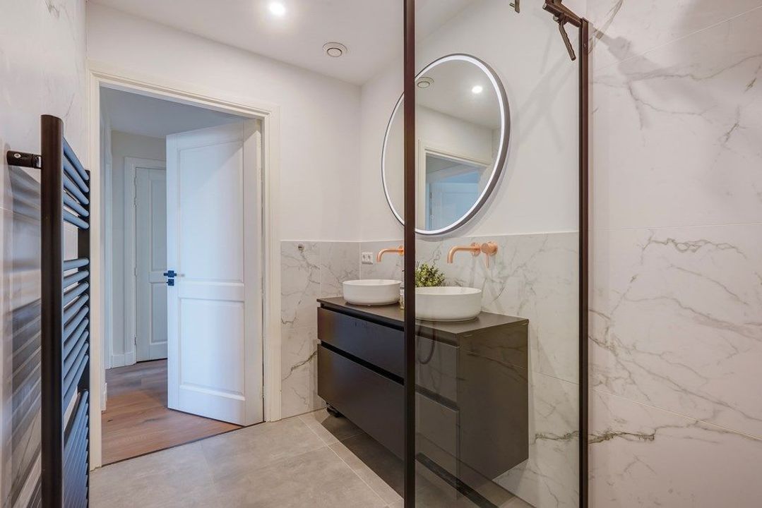 De luxe badkamer is keurig en modern uitgevoerd en voorzien van een inloopdouche, een dubbel wastafelmeubel en een designradiator. Daarnaast is er een separaat toilet en een praktische bergruimte. De combinatie van authentieke charme, een verzorgde afwerking en een rustige ligging maakt dit appartement tot een bijzonder aantrekkelijke en comfortabele woonplek.