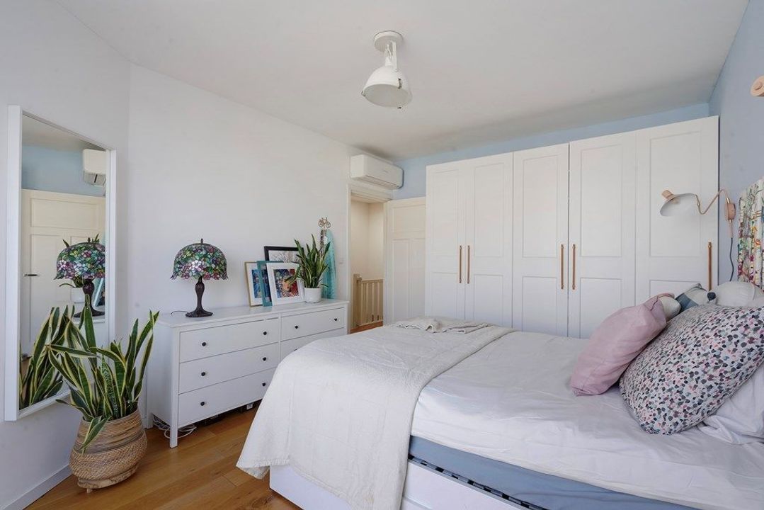 Hier bevinden zich drie slaapkamers, waaronder een ruime master bedroom met toegang tot een groot tweede balkon. De luxe badkamer is een oase van comfort, met een inloopdouche, ligbad en dubbele wastafel. Ook op deze verdieping zorgen de grote ramen voor veel licht en een ruimtelijk gevoel.