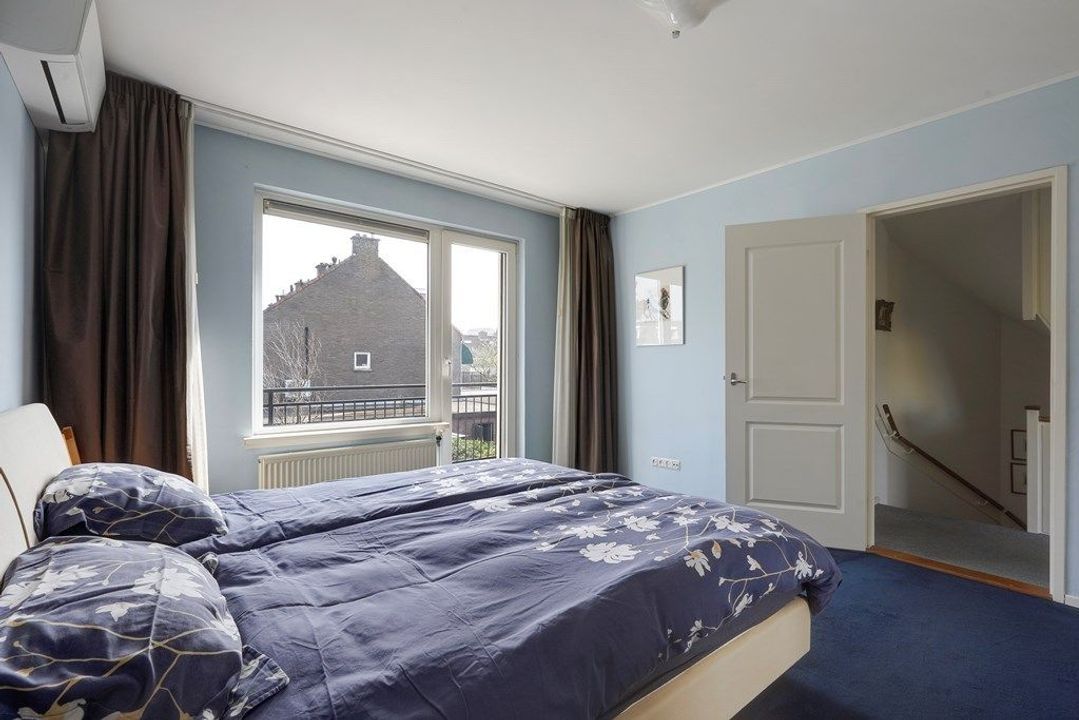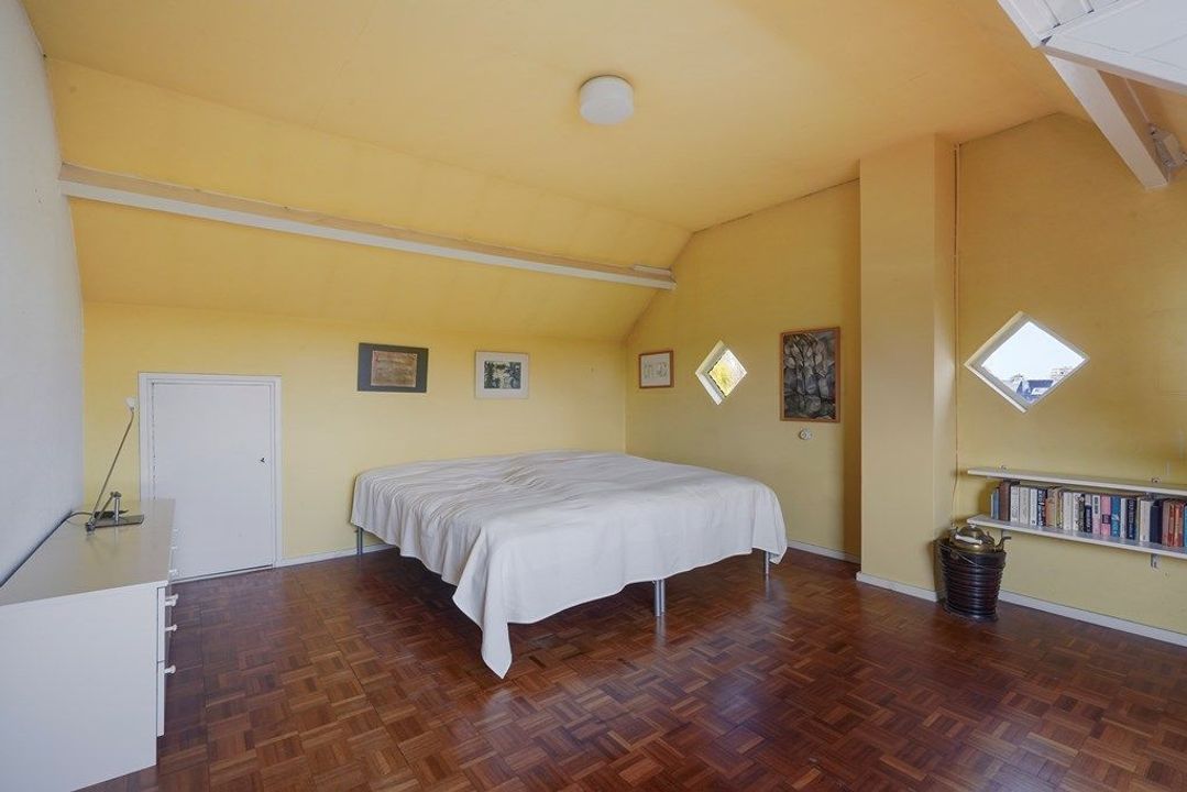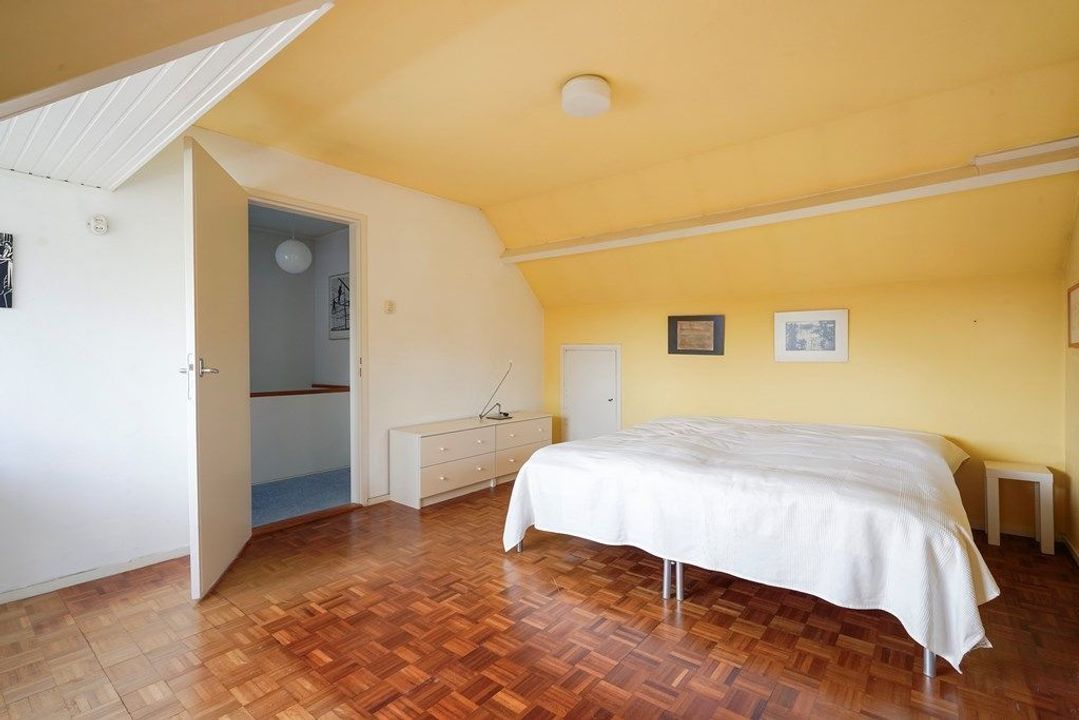 Overloop met toegang tot de slaapkamers en de badkamer. Aan de voorzijde bevindt zich een ruime slaapkamer, die desgewenst eenvoudig kan worden opgesplitst in twee volwaardige slaapkamers. Aan de achterzijde ligt een tweede slaapkamer met toegang tot het balkon. De badkamer is uitgerust met een douche, wastafel en toilet.